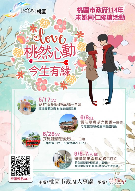 函轉桃園市政府114年「桃然心動 今生有緣」第四梯次未婚聯誼活動