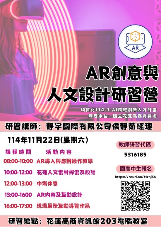 花蓮高級商業職業學校均質化「AR創意與人文設計研習營」活動