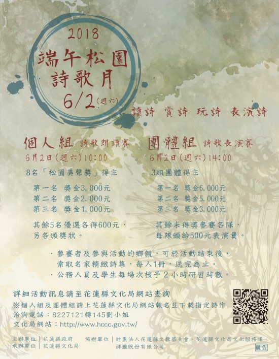 (二)團體組詩歌表演賽:即日起至 107 年 5 月 16 日(週三) 17:00 止。