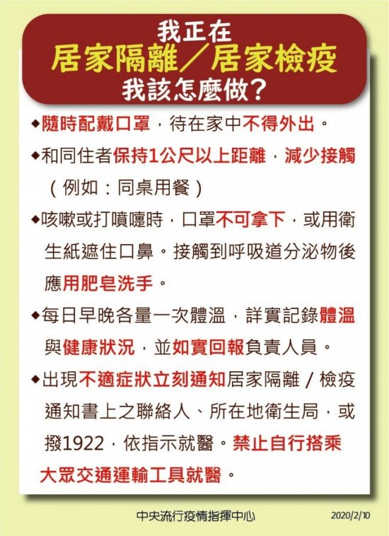 (五)倘若家中有配合居家隔離(檢疫)同住者注意事項,請參閱背面宣導文件 。