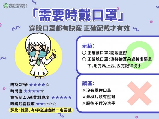 (二)防疫時期加強注意呼吸道衛生及咳嗽禮節,出入公共場所或搭乘公共交通運輸 時需佩戴口罩,使用完畢的口罩請妥善丟棄。