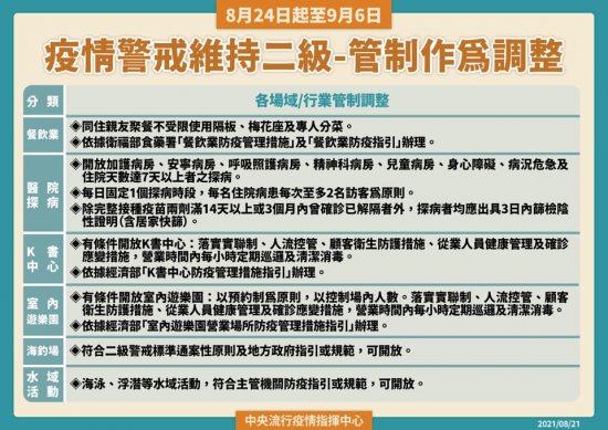 8. 符合主管機關防疫管理指引或規範得開放: K 書中心、室內遊樂園、海釣場、海泳/浮潛等水域活動。