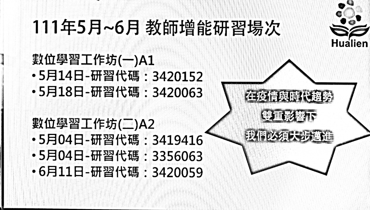 若老師有空可以先參加報名參加底下日期的研習,因為每位老師都要參與