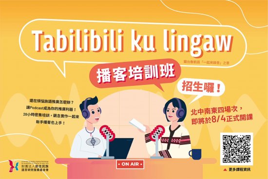 | 二、 | 為擴散傳承原住民族語言永續之理念,基金會於 112 年度辦理旨揭培訓課程,期鼓勵大眾運用 Podcast 平台分享原住民族語言與文化知識,創作以族語或雙語為主體之 Podcast 頻道節目,保留珍貴之語言寶藏。 |