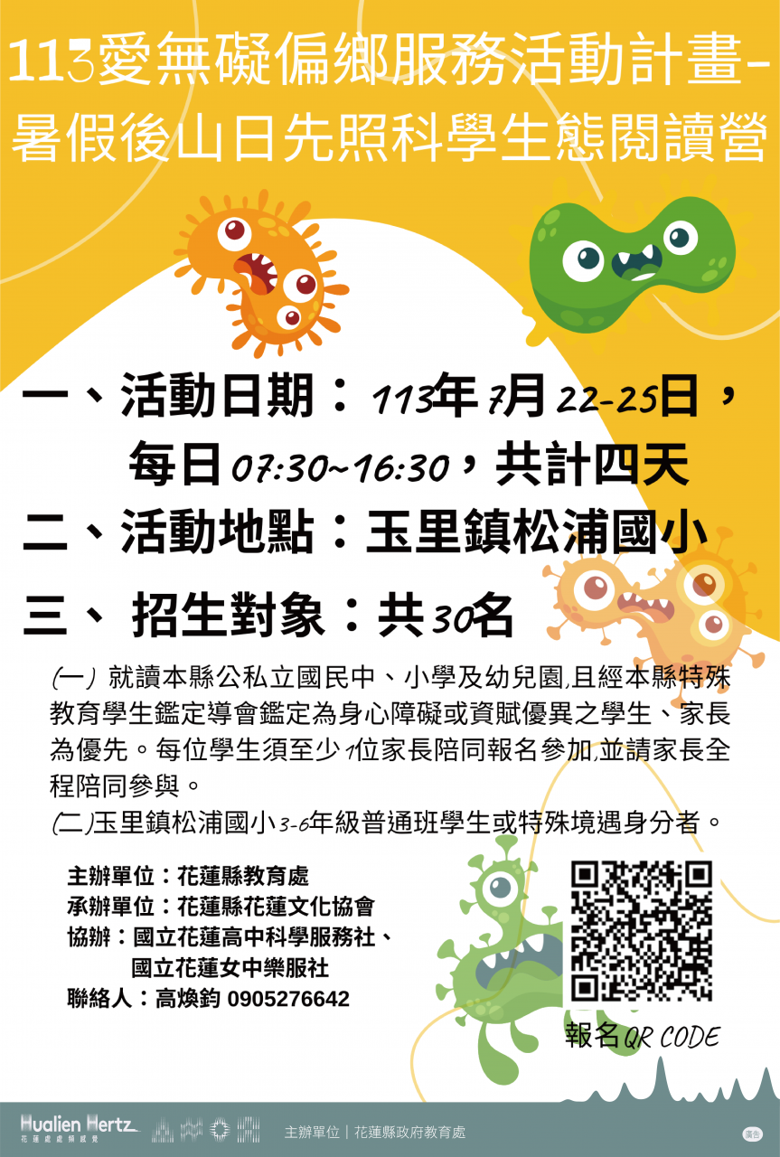 三、 檢附活動實施計畫及報名文宣各 1 份(花蓮縣政府教育處處務 公告 110626 下載)。
