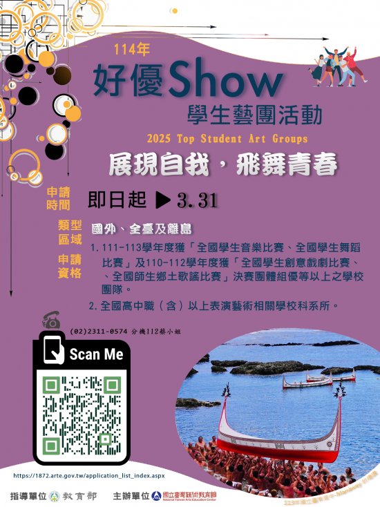 國立臺灣藝術教育館「114年好優Show學生藝團活動」徵選計畫