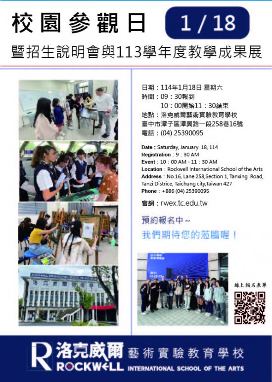 | 五、 | 歡迎家長與同學參加 114 年 1 月 18 日的校園參觀日(OpenHouse Day),報名連結: https://forms.gle/hChVR3PADgT9b2FR8 |